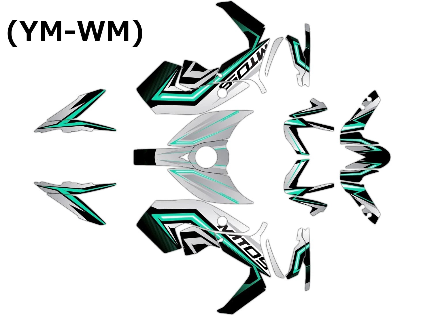 - フルグラフィックキット付属: ヘッドライトカバー、ラジエーターシュラウド、フロントフェンダーとリアフェンダー、ロアフォークガード、スイングアーム、エアボックス、ガソリンタンクとキャップ、リアサイドカバー。