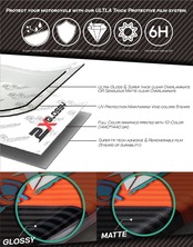 - フルグラフィックキット付属: ヘッドライトカバー、ラジエーターシュラウド、フロントおよびリアフェンダー、ロアフォークガード、スイングアーム、エアボックス、ガソリンタンクとキャップ、リアサイドカバー。