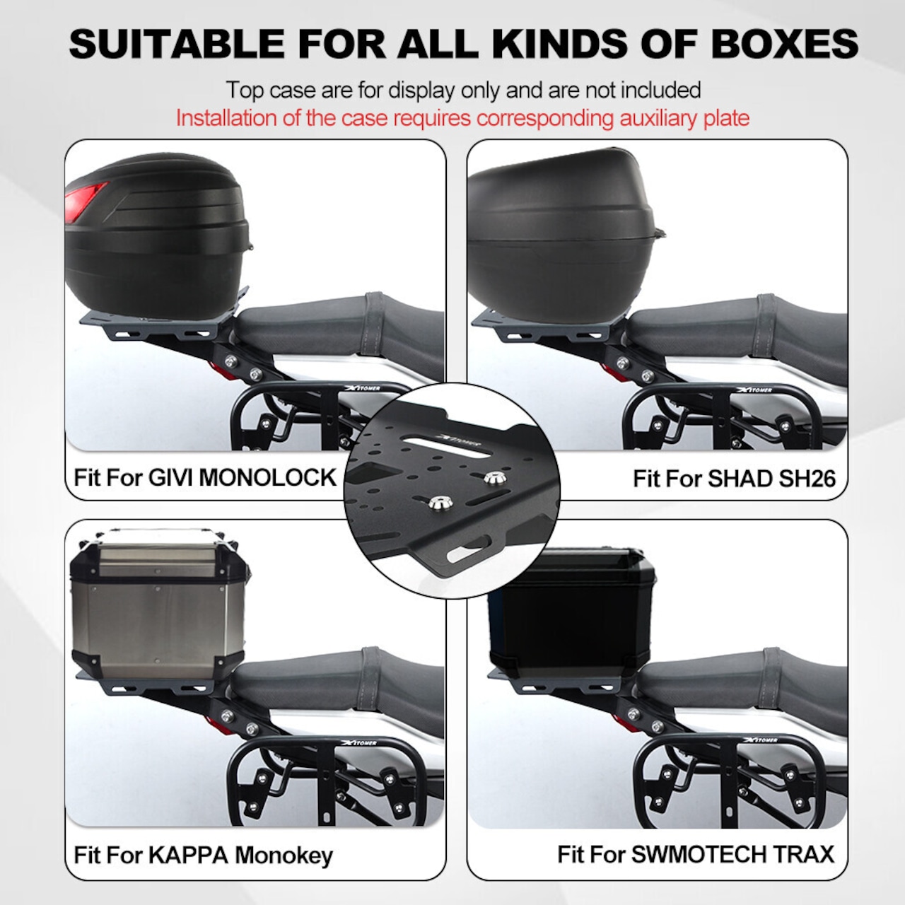 多くのスーツケースやバッグ(GIVI、Shade、SW-Motech、Rotopaxなど)に適合します。