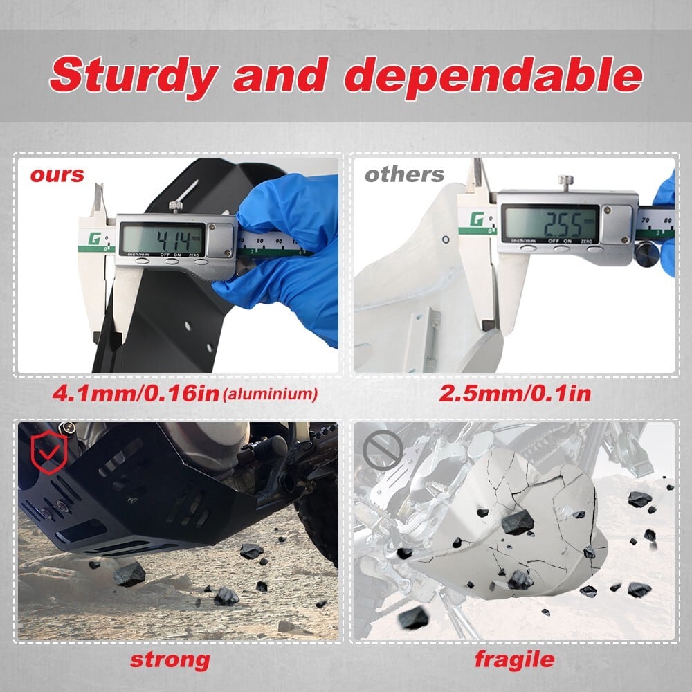 エンジンを破片、小石、バイクの下からの垂直方向の滑りから保護します。高強度ビレットアルミ合金製で、非常に軽量、安定性と堅牢性を備えています。バッシュプレートの取り付けには、ラリー仕様のロアクラッシュバーが必要です。