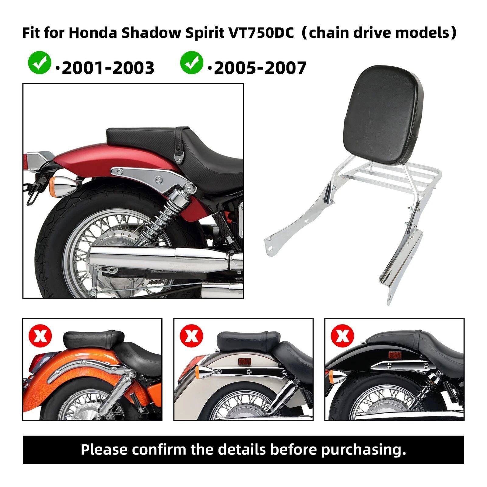 2001-2003、2005-2007 ホンダシャドウスピリット VT750DC(チェーンドライブモデル)に適合